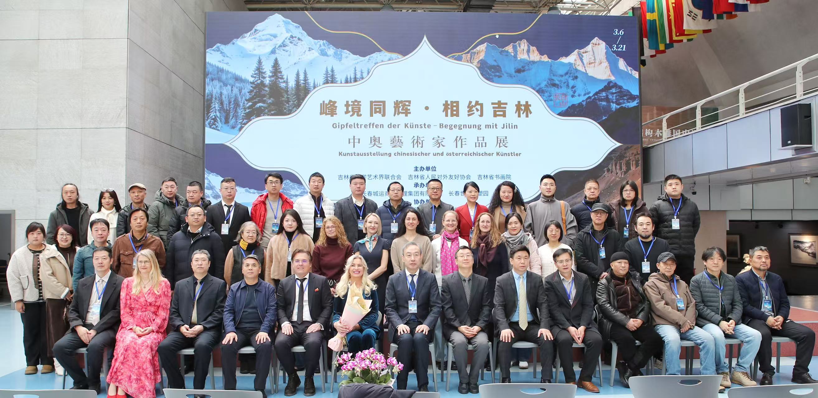 개막식에서는 성문예연합회 부회장 장동항(张东航), 성서화원 부원장 리팅셴(李廷先), 오스트리아 예술가 대표 잉그리드(Ingrid)가 차례로 축사를 전했다. 장동항 부회장은 축사에서 전시의 교류 가치를 높이 평가하고 시외무처 등 주관 기관의 적극적인 지원에 감사를 표했다. 지린성 외사판공실 2급 순시원 수리정(修立征), 중·오 양국 예술가 대표 및 일부 창춘 거주 외국인 전문가와 가족들이 행사에 참석했다.